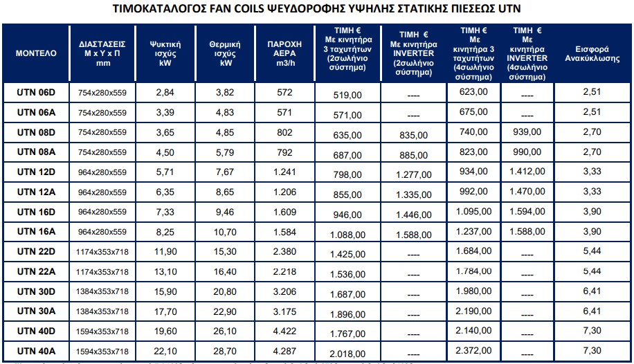 FAN COIL UTN06D Ψευδοροφής υψηλής στατικής πιέσεως