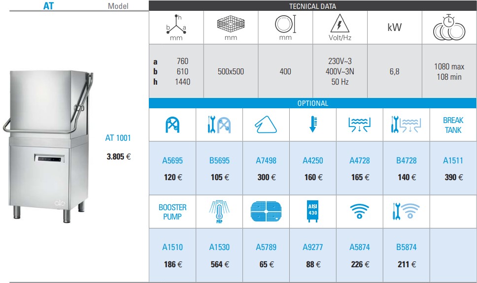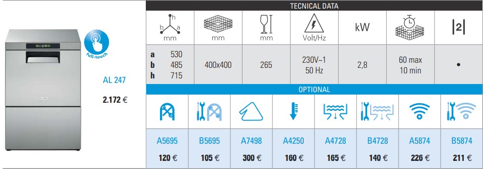 Επαγγελματικό πλυντήριο πιάτων – ποτηριών ATA AL247