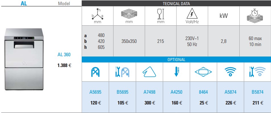 Επαγγελματικό πλυντήριο πιάτων – ποτηριών ATA AL360