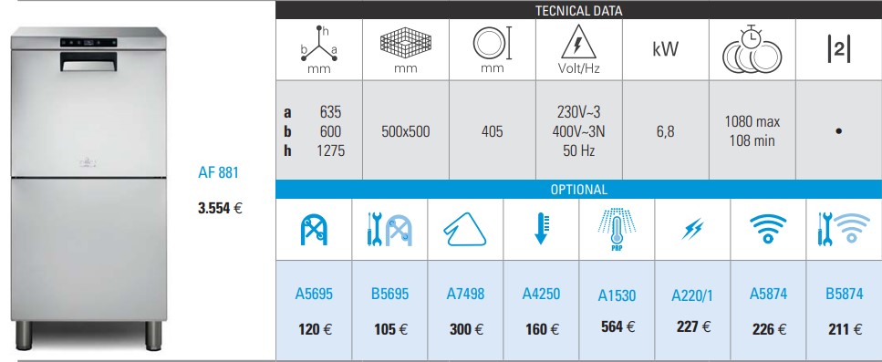 Επαγγελματικό πλυντήριο πιάτων – ποτηριών ATA AF881