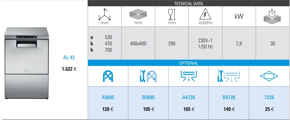 Εξαιρετικά εύκολο στη χρήση : εκτός από το διακόπτη ON / OFF, αυτό το μοντέλο χαρακτηρίζεται από ένα μόνο κουμπί. Έτσι, σημαίνει το κατάλληλο πλυντήριο γυαλιού ακόμη και για μη εκπαιδευμένους χρήστες και εξαιρετικά ταραχώδη μπαρ και παμπ.